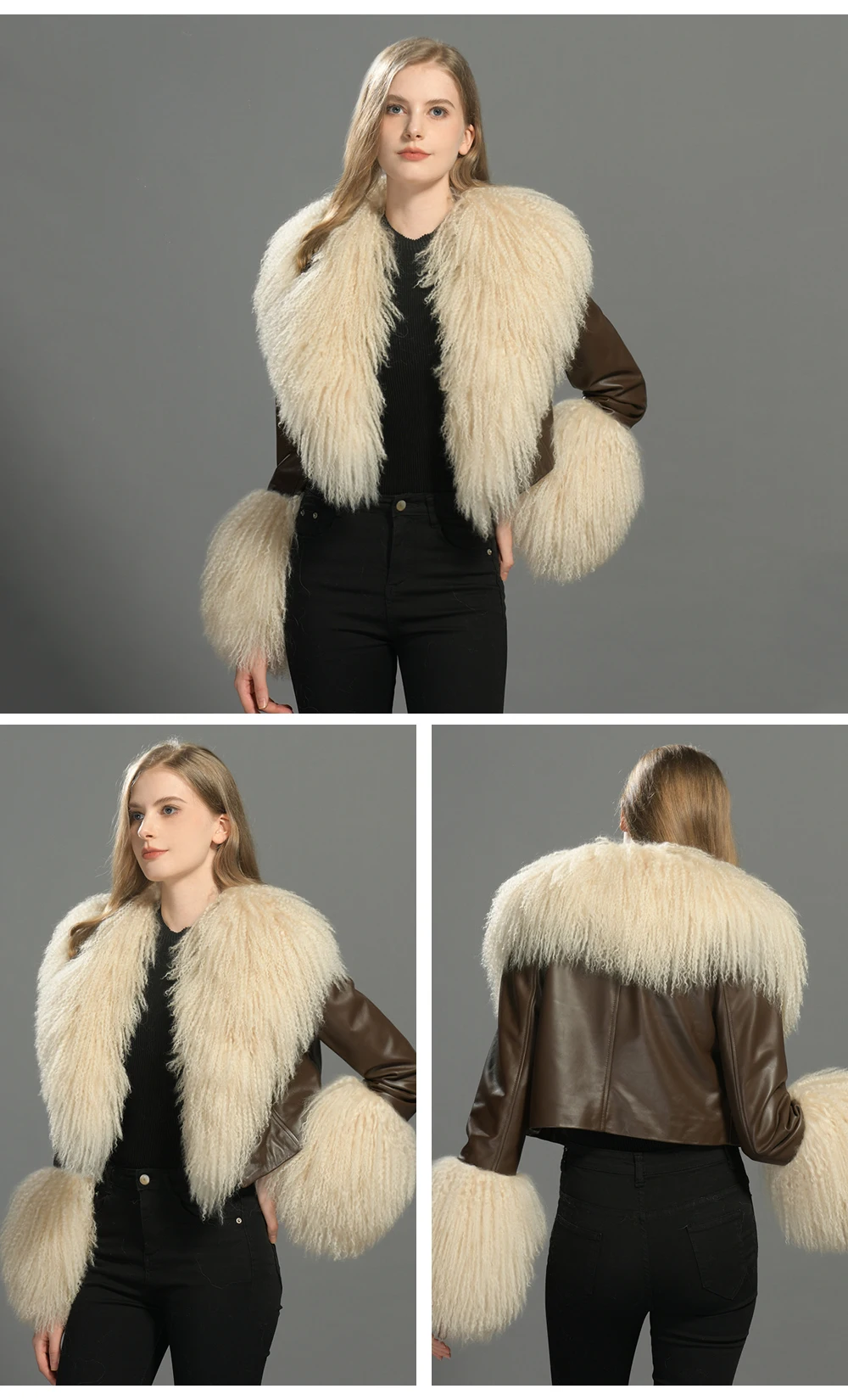 Big Luxury Natural Mongolian Lamb Fur Collar Suede Sheepskin Coat Warm Ladies Autumn Soft Cropped Custom Leather Jacket Woman |