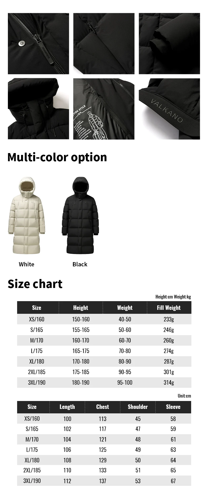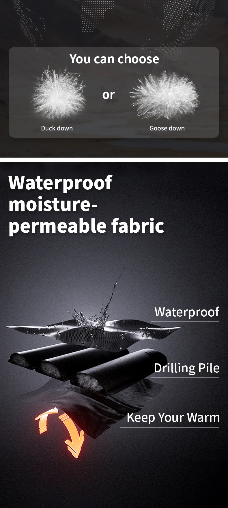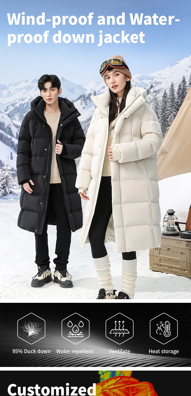 Men's Women's Stylish Long-Style Over-the-Knee Jacket Casual Fashion 95% Waterproof Extreme Cold Weather Hood Zipper Breathable